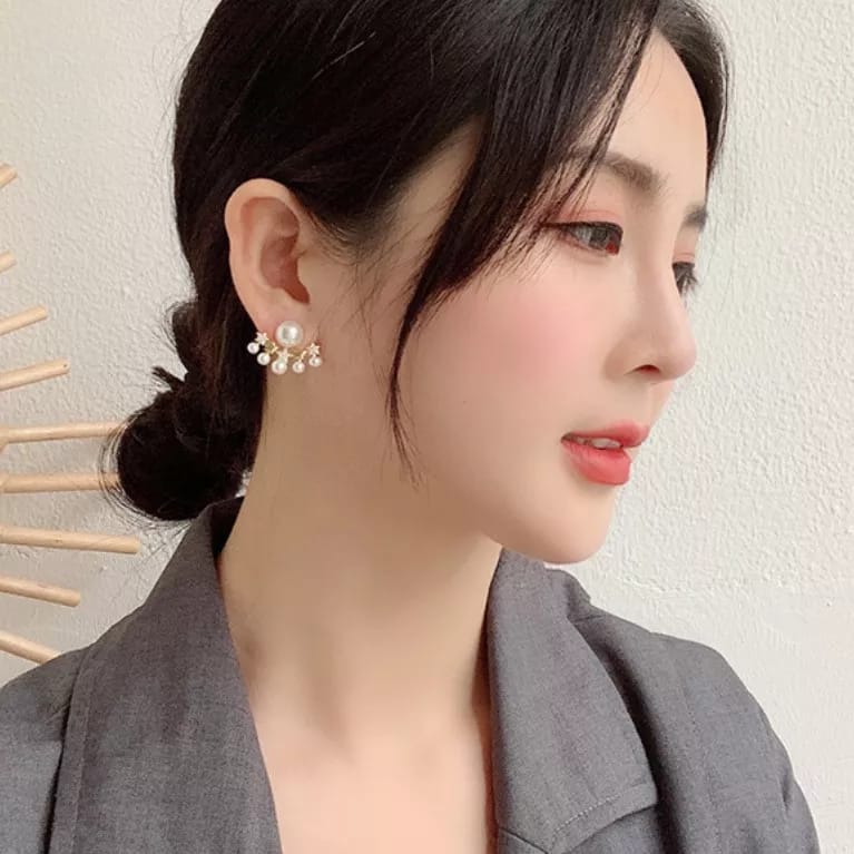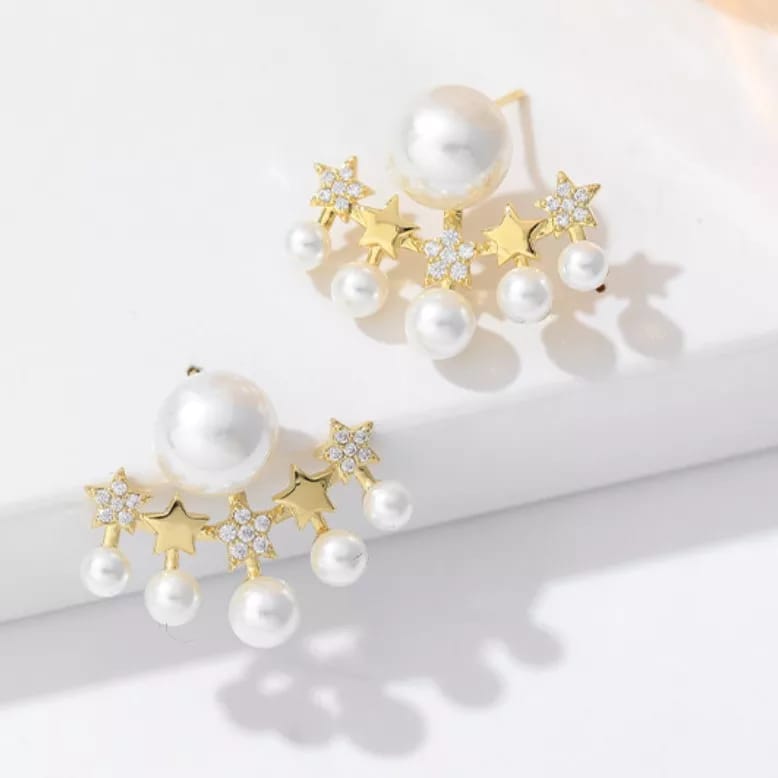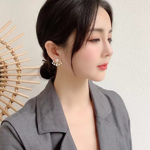 Gold Plated Korean Amazing AD-Pearl Stud Earrings