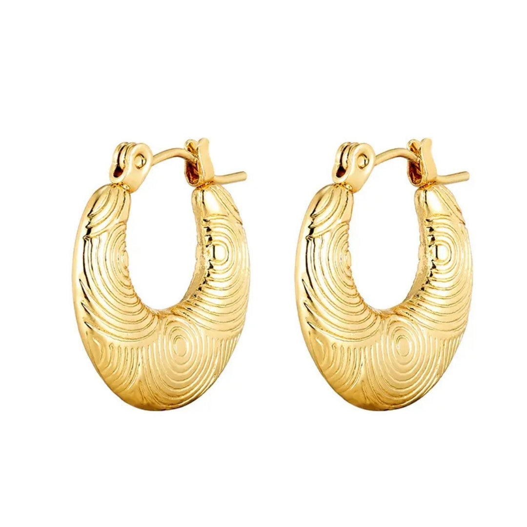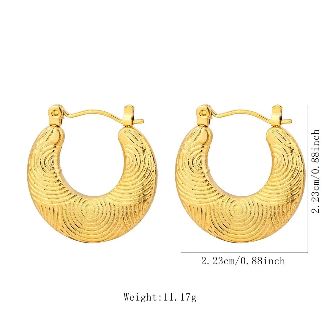 These anti tarnish golden hoop earrings are the perfect addition to your jewelry collection. They feature a protective coating that prevents tarnishing, ensuring long-lasting shine. With a sleek and modern design, these earrings will elevate any outfit. Invest in quality and style with these new hoop earrings.