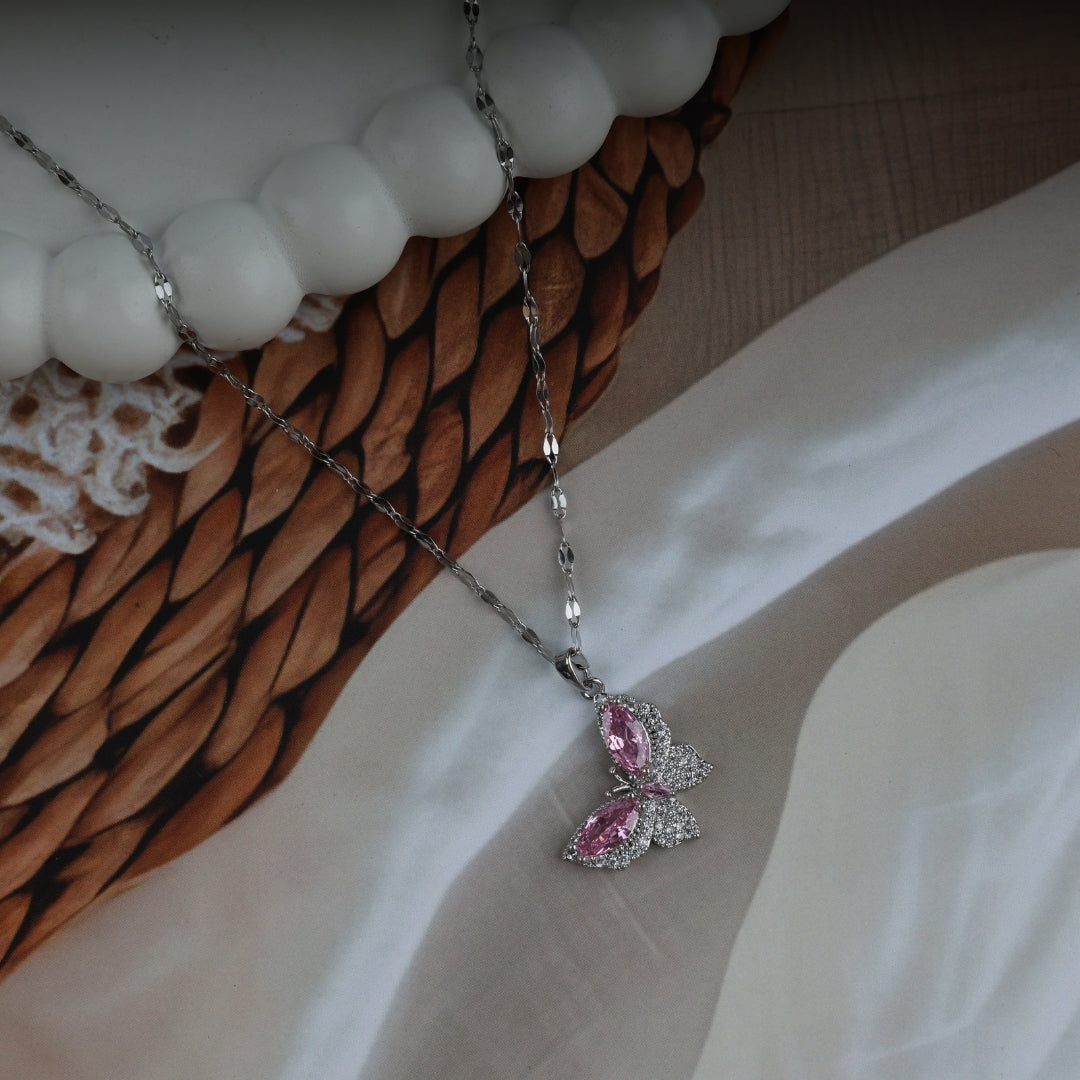 Butterfly Pink Zircon Stones Pendant