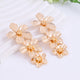 These Double Golden Flower Earrings feature a stunning and unique design that is sure to make a statement. The two delicate golden flowers add a touch of elegance and charm to any outfit. Crafted with high-quality materials, these earrings are both durable and stylish, making them the perfect addition to any jewelry collection.