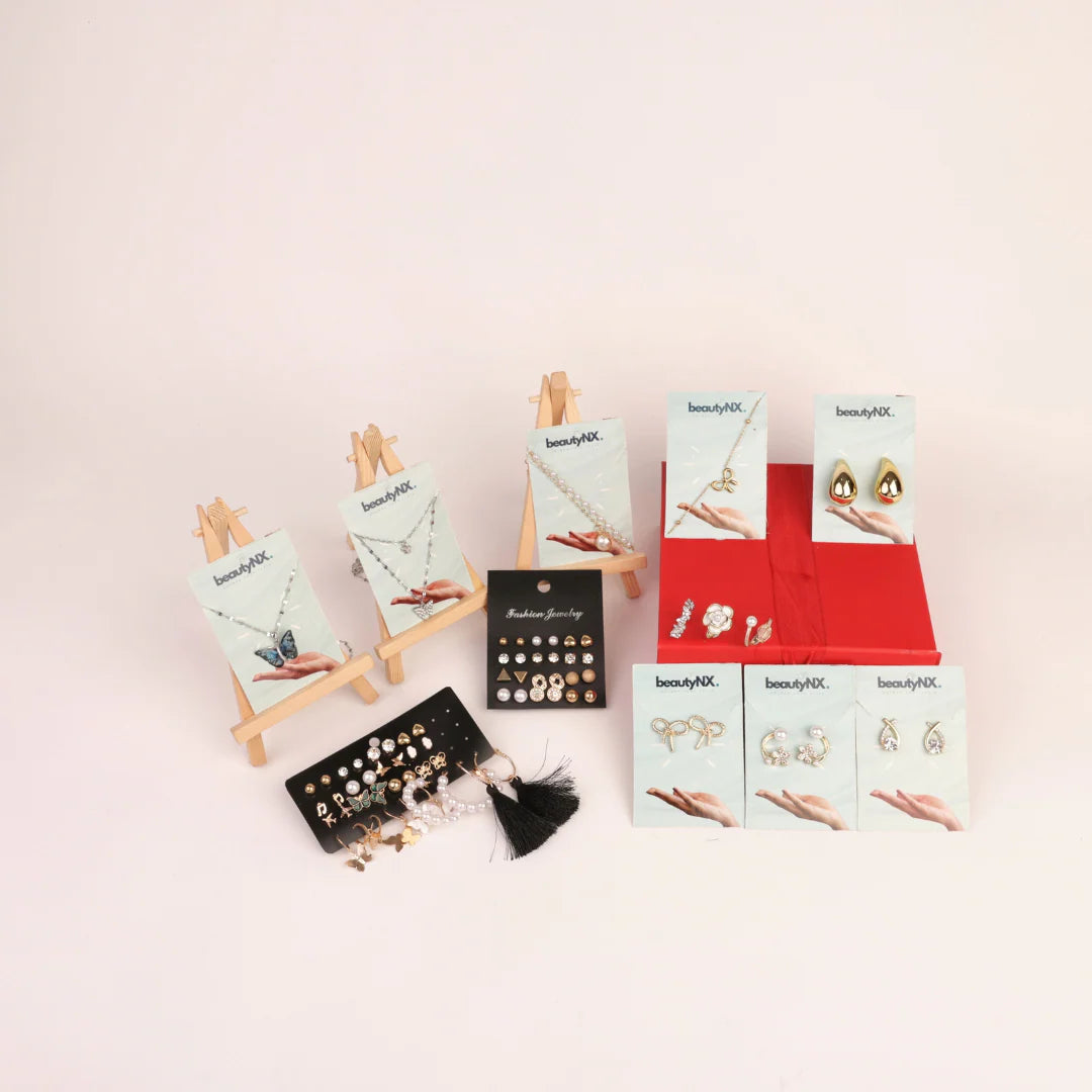 Discover the ultimate accessory set with this Mega Combo of 40 pieces, featuring earrings, rings, bracelets, and necklaces. Crafted to provide versatile styling options, this collection allows you to effortlessly enhance any outfit, whether for casual wear or special occasions. Expertly curated to blend elegance and variety, it offers a convenient way to refresh your look with coordinated jewelry, ensuring you always have the perfect piece at hand.