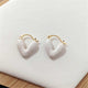 Stud Earrings: Simple and elegant, these earrings feature a small heart-shaped design that sits close to the earlobe. They are often made from metals like gold, silver, or stainless steel and can be adorned with gemstones or crystals for added sparkle.